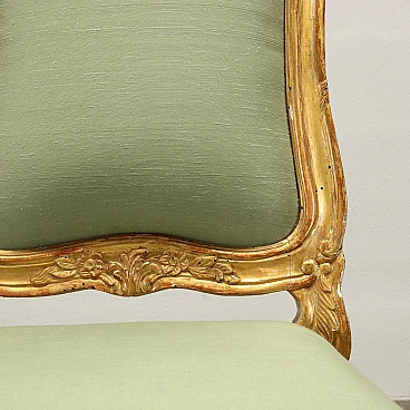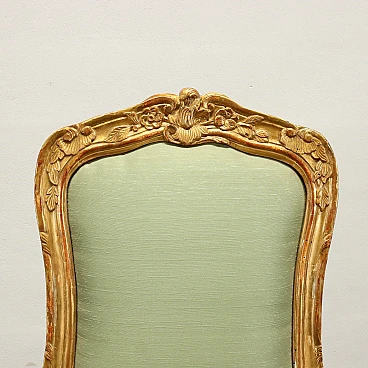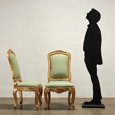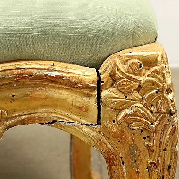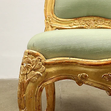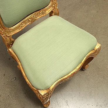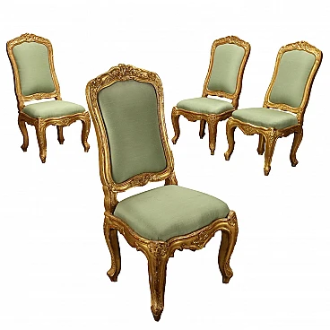 4 Sedie stile Barocchetto in legno dorato e tessuto, fine '800