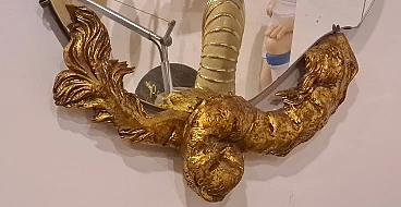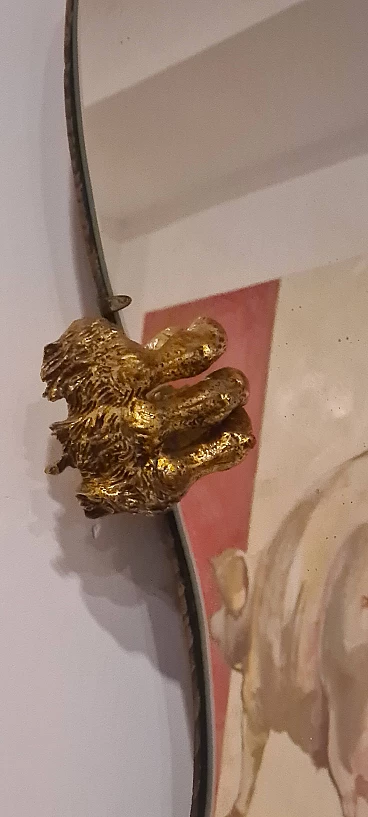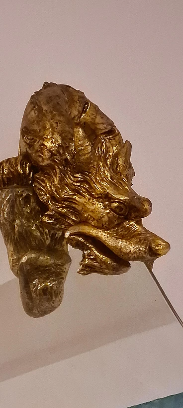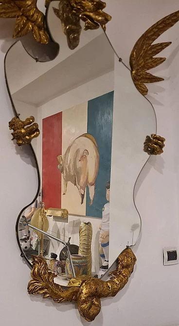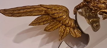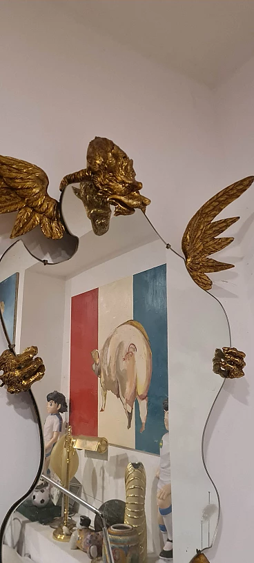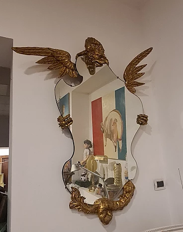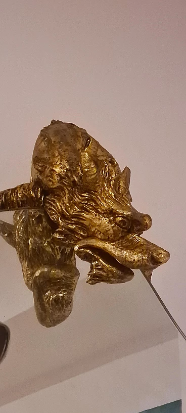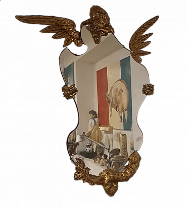 Specchiera da parete stile Gotico - Chinoiserie attribuita al grande ebanista francese Gabriel Viardot, fine '800. Specchio dalla forma irregolare sorretto dagli artigli di un imponente drago in legno intagliato e dorato a foglia oro. Viardot fu maestro nella realizzazione di mobili liberamente interpretati in "stile cinese-giapponese" adattati al gusto europeo dell'epoca. Notare la maestria con la quale è stato realizzato il drago: il perfetto intaglio del muso e delle zampe lo fanno sembrare vivo e feroce. Questo stupefacente specchio è capace di arredare da solo un ambiente data la sua severità e austerità. Intatto e perfetto senza nessun tipo di difetto.