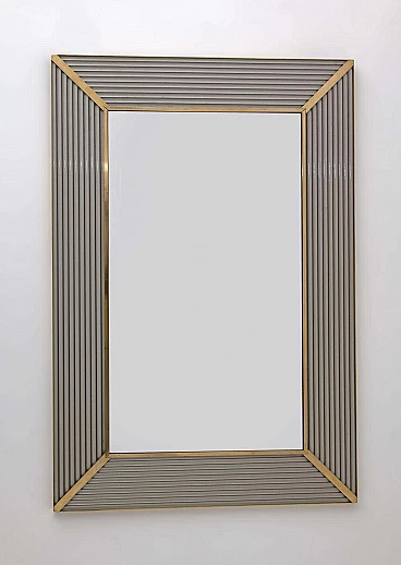 Specchio da parete in ottone e vetro di Murano, anni '90