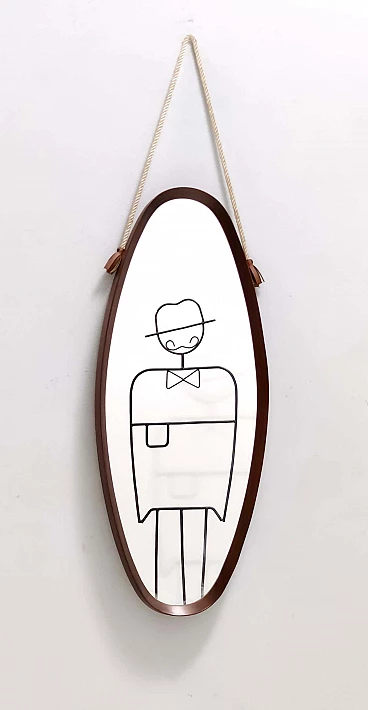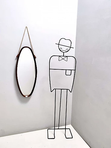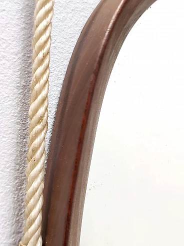 Specchio da parete ovale con cornice in faggio ebanizzato e corda in nylon, anni '50