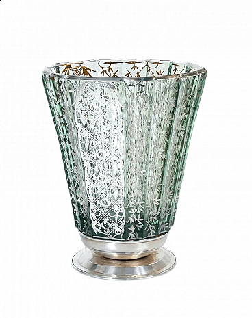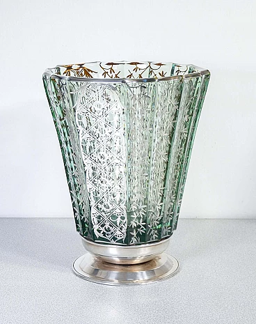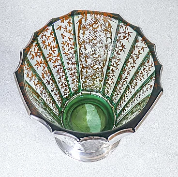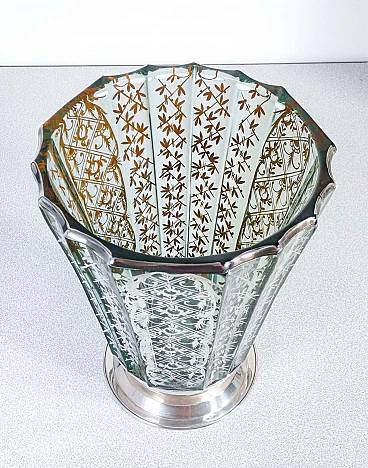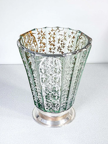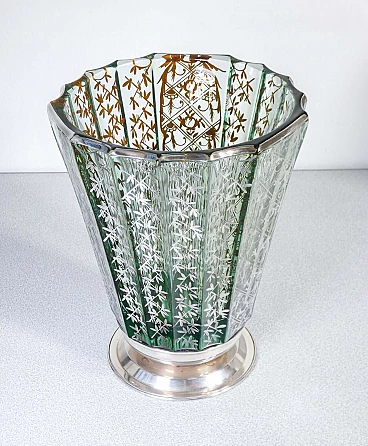 Vaso in vetro soffiato con decorazioni in argento, inizio '900