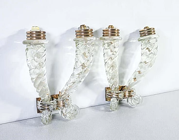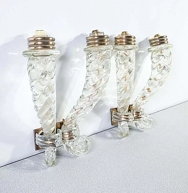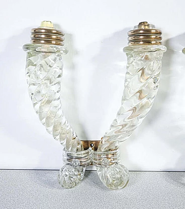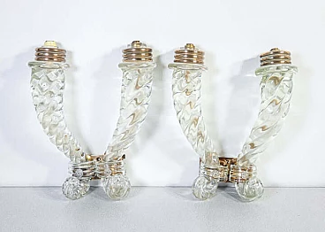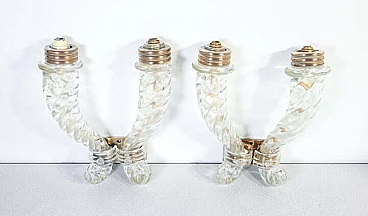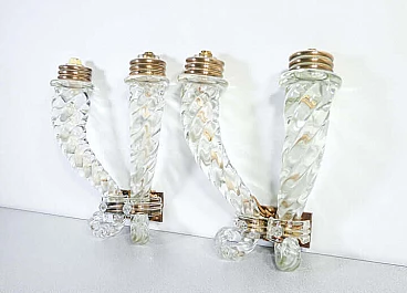Coppia di applique in vetro soffiato e bronzo di Barovier, inizio '900