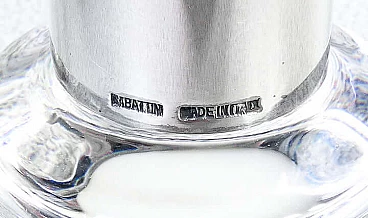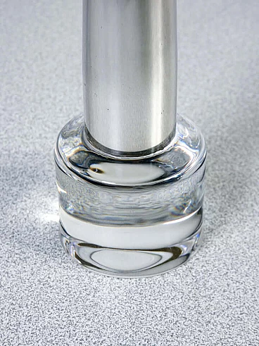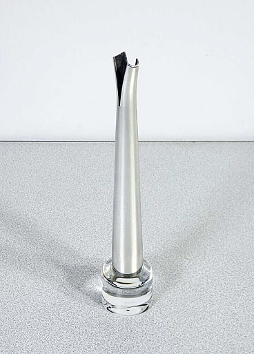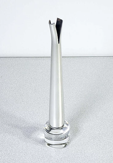 Vaso Moritz di Lino Sabattini per Argenteria Sabattini, anni '90. Vaso in metallo argentato con base in vetro.