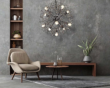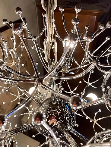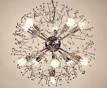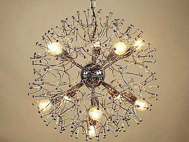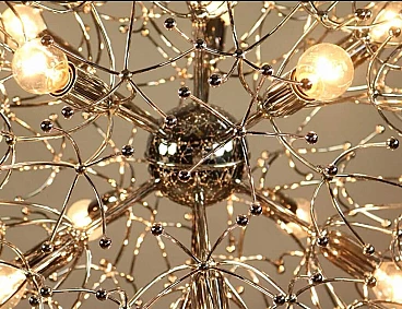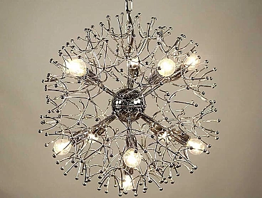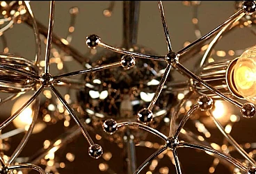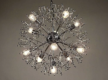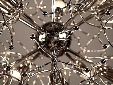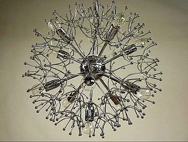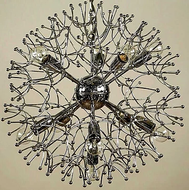 Lampadario Sputnik in ottone cromato di Gaetano Sciolari, anni '70