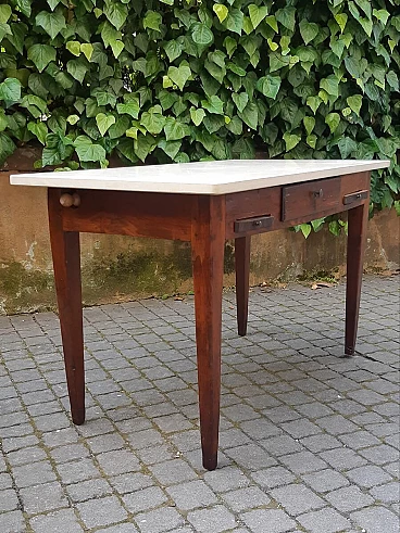 Tavolo da cucina attrezzato in olmo con piano in marmo botticino, '800