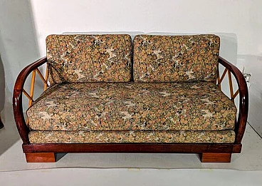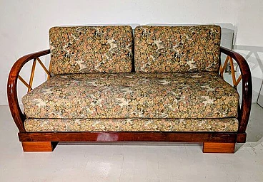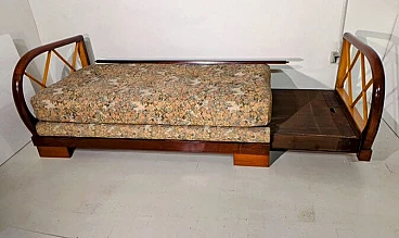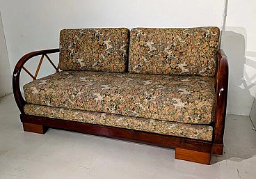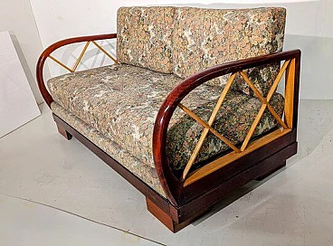 Divano allungabile in legno e tessuto nello stile di Paolo Buffa, anni '40