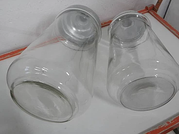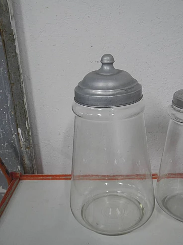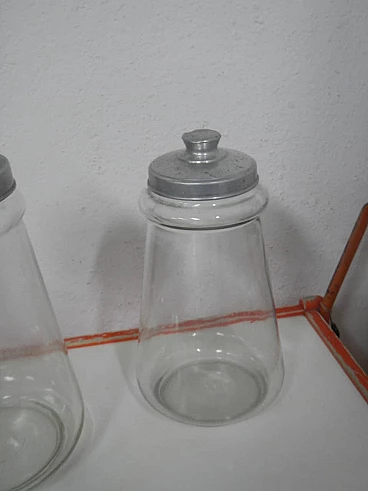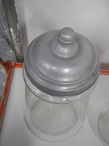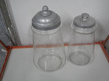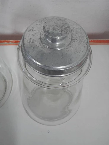Coppia vasi per caramelle in vetro con coperchio in in alluminio, anni '70