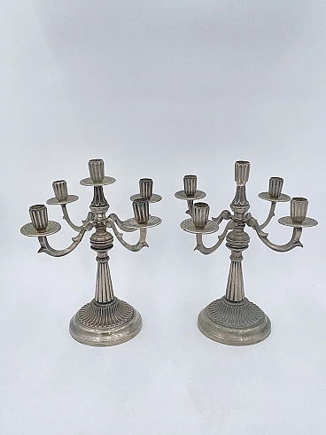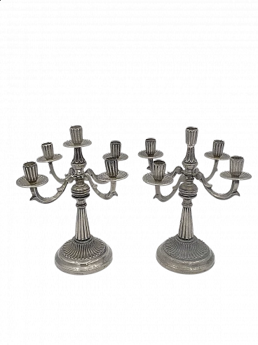 Coppia di candelabri placcati in argento 800, anni '80. Sono in ottime condizioni conservative, non vi è alcun difetto estetico o strutturale da segnalare, solo lievi e ovvi segni del tempo (vedi foto).