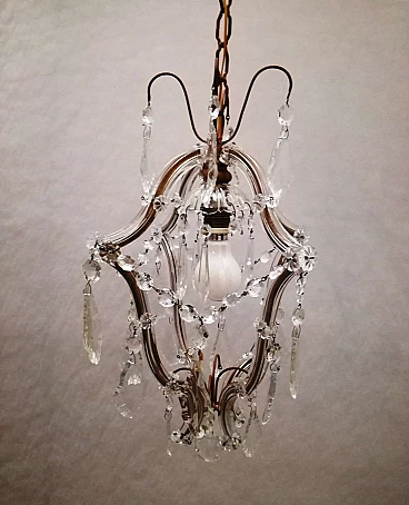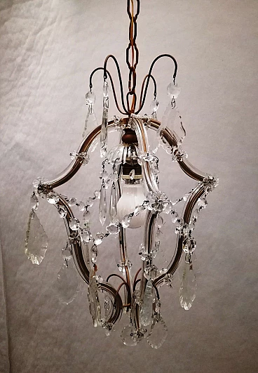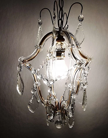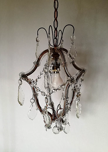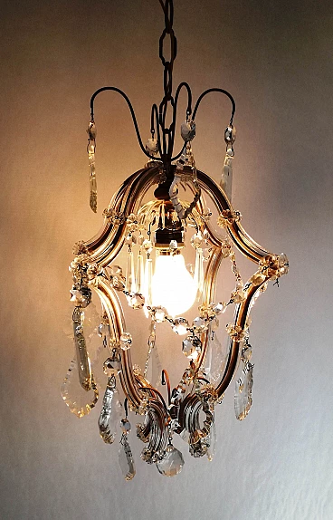 Lampadario in metallo dorato con cristalli in stile Maria Teresa, anni '50