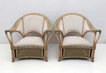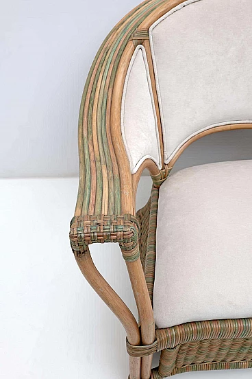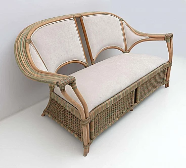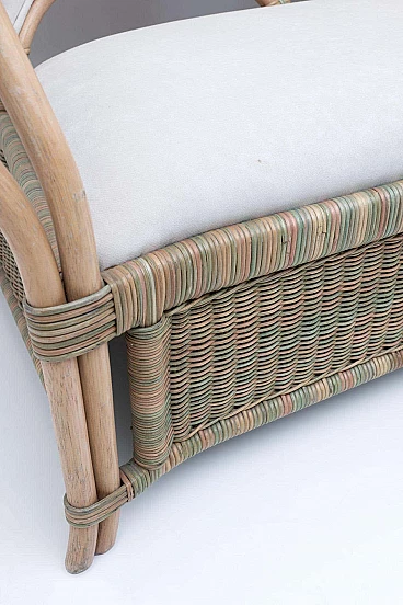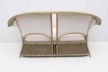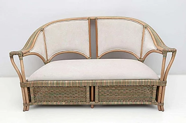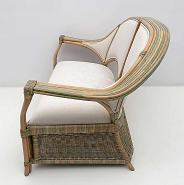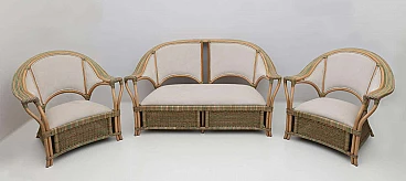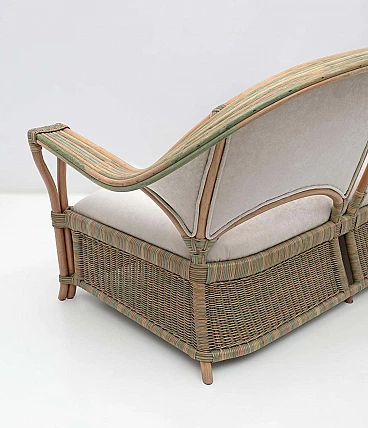 Coppia di poltrone e divano in vimini e rattan, anni '70