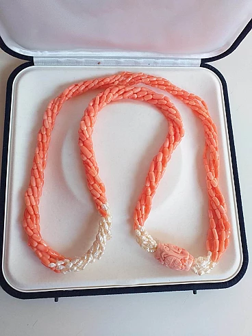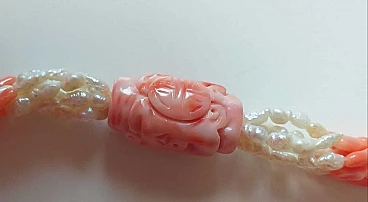 Collana in corallo rosa giapponese e perle di fiume, anni '70