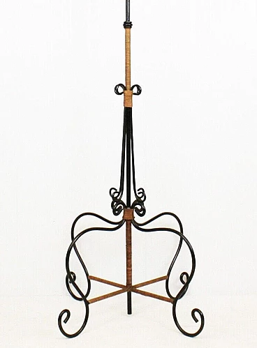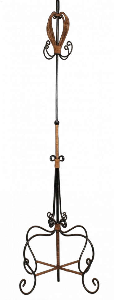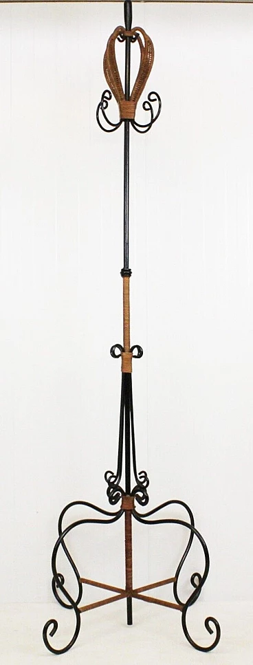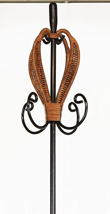 Appendiabiti da terra in ferro battuto e rattan, anni '60