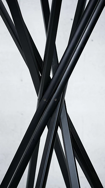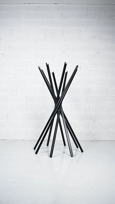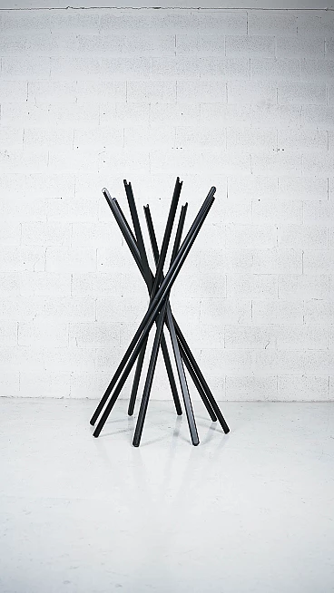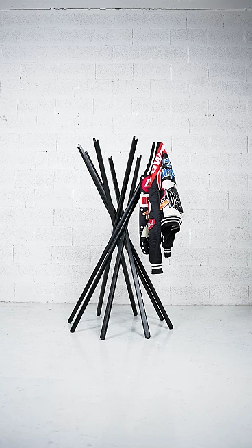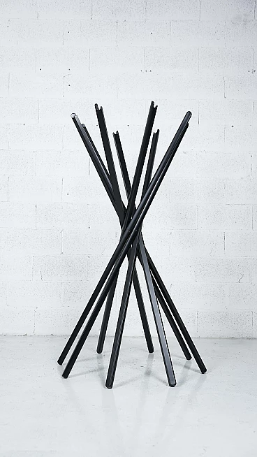 Sciangai è un appendiabiti richiudibile di Zanotta progettato nel 1973 da De Pas, D'Urbino e Lomazzi, un pezzo di storia del miglior design italiano a livello internazionale, ispirato all'antico gioco cinese. Ogni elemento in legno di Sciangai costituisce un appoggio a terra all'estremità inferiore e un supporto per cappelli, cappotti e altri indumenti all'estremità superiore. I componenti sono collegati tra loro appena sopra il centro, creando un'ampia circonferenza di supporti alla base, che garantisce la stabilità, e un insieme più raccolto di ganci per gli abiti nella parte superiore. Jonathan De Pas, Donato D'Urbino, Paolo Lomazzi sono tre designer italiani che, riuniti sotto l'acronimo DDL, operano nel settore del design industriale dal 1966. Dopo la morte di Jonathan de Pas (1932-1991), lo studio di design milanese DDL - De Pas, D'Urbino, Lomazzi è diventato Studio D'Urbino Lomazzi. Si tratta di una personalità professionale a tre voci di grande rilevanza per il design italiano; i tre designer hanno collaborato con le più grandi aziende del settore del mobile e nel 1979 hanno ricevuto il prestigioso Compasso d'oro per il progetto Sciangai realizzato per Zanotta nel 1973. Oltre al design industriale, nel corso della loro vita professionale i tre designer si dedicano anche a progetti architettonici, espositivi, di interni e urbanistici; ma si affermano soprattutto per il loro stile trendy e anticonvenzionale, un paradosso pop degli anni Sessanta, che applicano agli oggetti di arredamento. Di grande rilievo è tuttavia l'attività svolta come installatori e architetti per l'Esposizione Universale di Osaka del 1970, dove realizzarono una serie di edifici residenziali pneumatici per il padiglione italiano. Nel campo dell'arredamento, le loro opere più famose sono la poltrona gonfiabile Blow per Zanotta, la poltrona biposto Joe per Poltronova a forma di guanto da baseball (omaggio al giocatore di baseball americano Joe di Maggio, scomparso nel 1999). Nel 1971 realizzano anche una libreria modulare per Longato chiamata Brick e l'appendiabiti Sciangai, sempre per Zanotta.