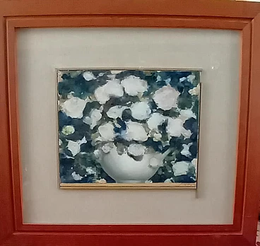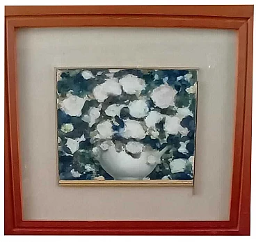 Franco Sarnari, Rose bianche, dipinto a olio su tela, anni '80