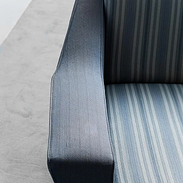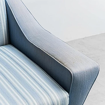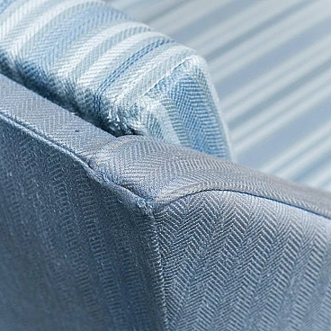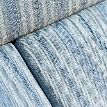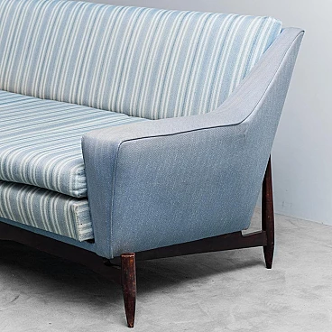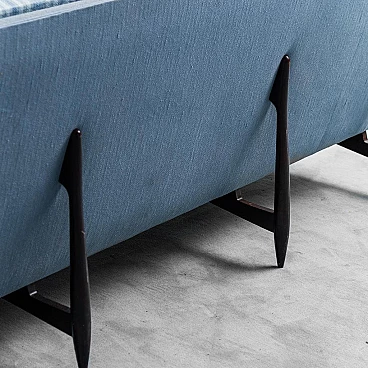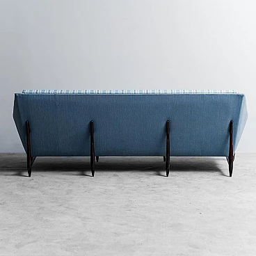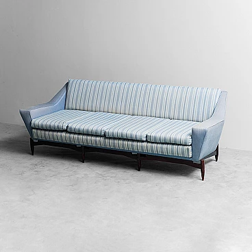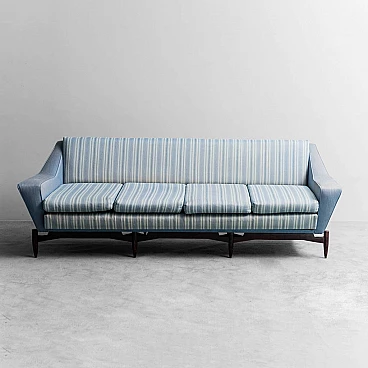 Divano a quattro posti in legno e tessuto blu, anni '60