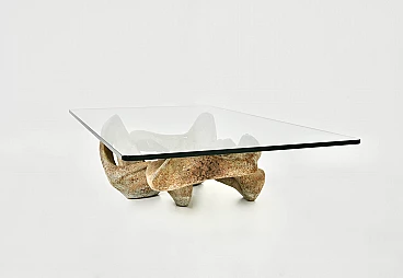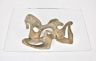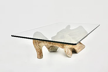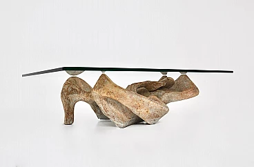 Tavolino in cemento e vetro di Claudio Trevi, anni '70