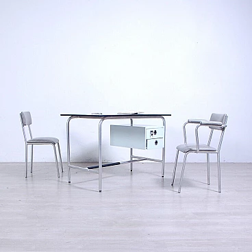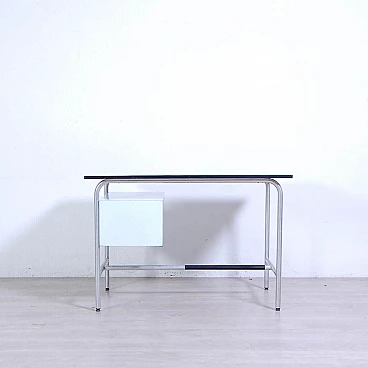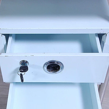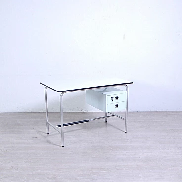 Scrivania in alluminio e impiallacciatura bianca con cassetti in ferro, anni '60