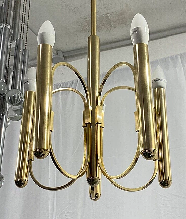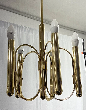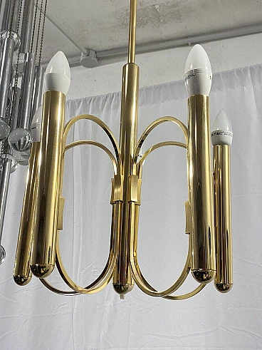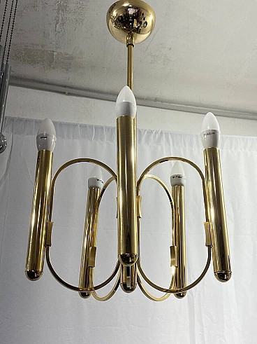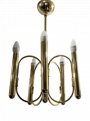 Lampadario in ottone a 5 luci di Gaetano Sciolari, metà '900
