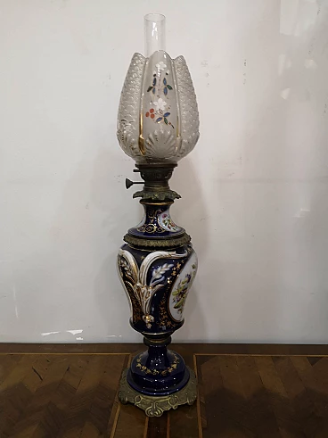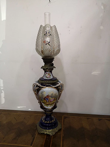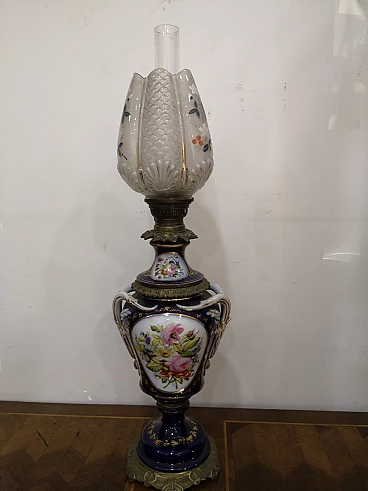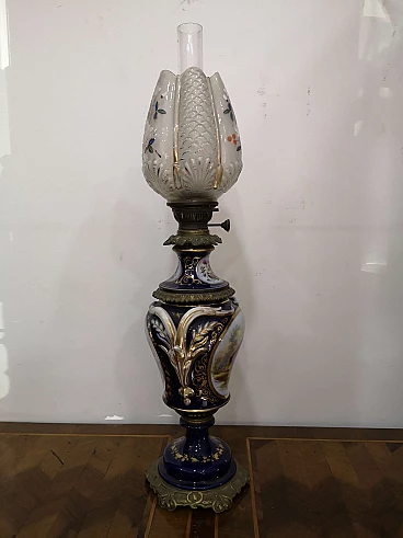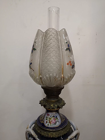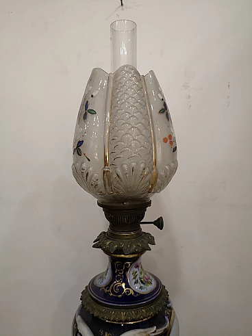 Lampada a petrolio in porcellana di Sèvres, metà '800