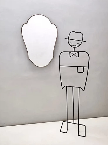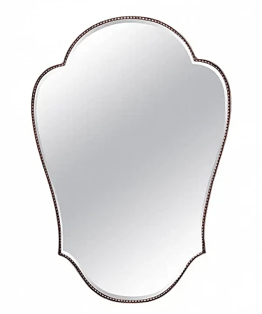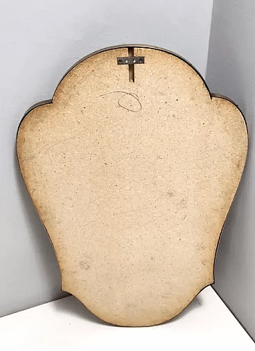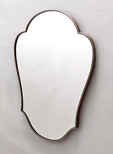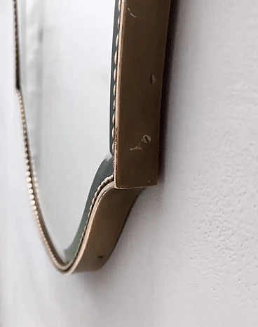 Specchio da parete smussato a forma di scudo in ottone, anni '50