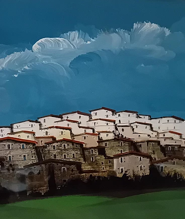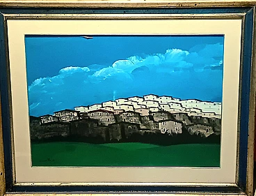 Enotrio Pugliese, Paesaggio calabrese, tempera su compensato, anni '60