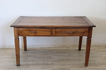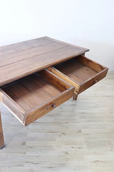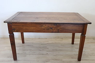 Tavolo italiano da cucina in legno massello di pioppo, 1850 circa. Il tavolo è molto semplice e lineare, caratterizzato da solide gambe a spillo. Dotato di due ampi cassetti. Questo tavolo rustico è perfetto per una casa di campagna e può essere utilizzato in vari modi: come tavolo da cucina, da pranzo o come grande scrivania. Proposta ad un ottimo prezzo trattabile, vi invitiamo ad inviarci le vostre proposte di acquisto, le valuteremo con piacere. Vi consigliamo comunque di guardare bene in dettaglio tutte le foto allegate. Larghezza 150 cm, profondità 88 cm, altezza 85 cm. Imballo professionale, spedizioni assicurate con corrieri, consegna su appuntamento solo su piano strada, no facchinaggio ai piani.
