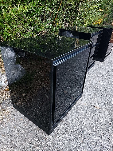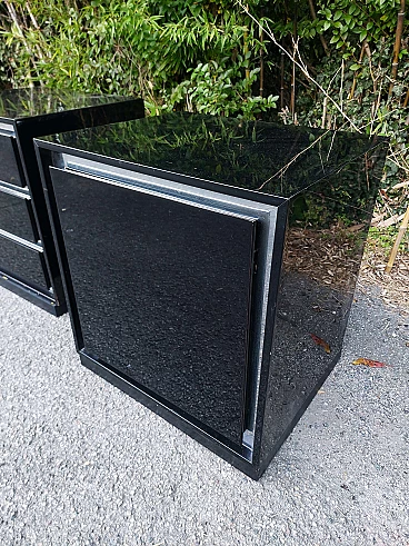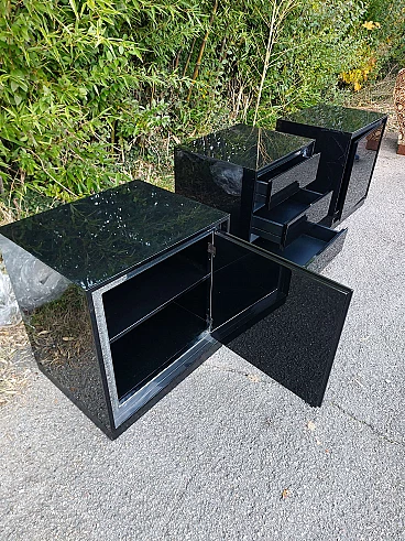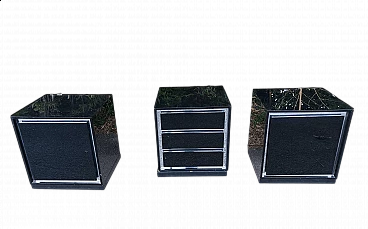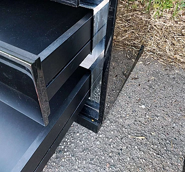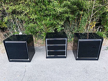 3 Comodini in legno nero lucido e metallo cromato di Gavina, anni '70