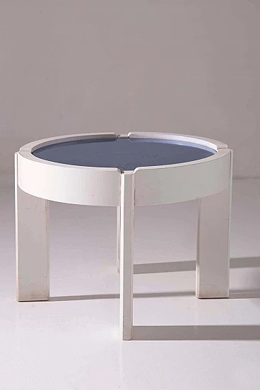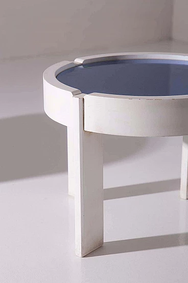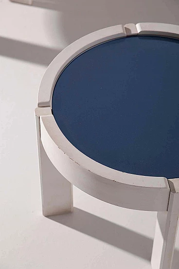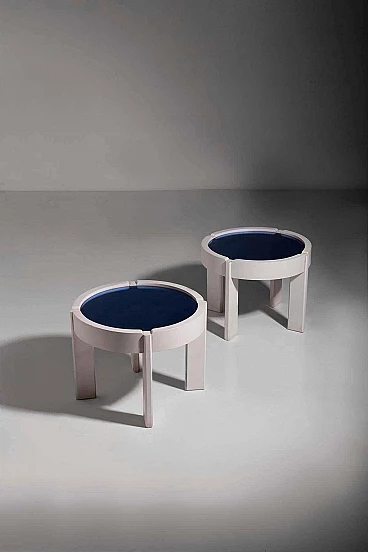 Immagina di essere trasportato indietro nel tempo fino agli splendidi anni '70, quando il design italiano era sull'orlo di una rivoluzione di stile e creatività. Con orgoglio, ti presentiamo questi straordinari tavolini bassi, piccole gemme che rappresentano un'autentica finestra sulla storia e sulla bellezza italiana. Questi tavoli sono il risultato della visione senza tempo di Gianfranco Frattini, un maestro nel mondo del design italiano. Frattini, virtuoso nell'arte di combinare forma e funzione, ha arricchito questi mobili con la sua eredità di eleganza e innovazione. Realizzati da abili artigiani italiani nel fervore creativo degli anni '70, questi tavoli portano con sé la dedizione e l'abilità degli artigiani di un'epoca d'oro. Ogni dettaglio, dall'elegante struttura in legno laccato bianco al piano in vetro blu, riflette la passione e l'esperienza di chi li ha realizzati. Gli anni '70 hanno rappresentato un'epoca di cambiamenti e innovazioni e questi tavoli sono un affascinante tributo a quel periodo. Il loro stile inconfondibile e il loro carattere unico catturano l'essenza dell'eleganza degli anni '70, un'epoca in cui l'arte e la creatività dominavano la scena. In condizioni vintage eccezionali, questi tavoli mostrano solo lievi segni d'uso, come cicatrici di un passato ben vissuto, aggiungendo un tocco di autenticità e fascino. Portare a casa uno di questi tavoli non significa solo aggiungere un pezzo di design alla tua casa, ma anche abbracciare la storia e l'arte italiana. Preparati a infondere al tuo spazio un tocco di eleganza senza tempo, grazie a queste piccole opere d'arte vintage.