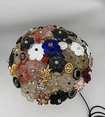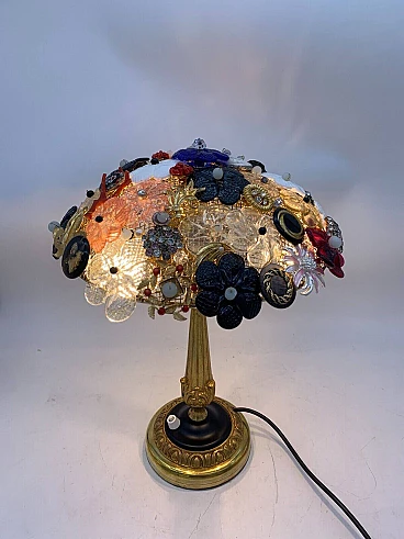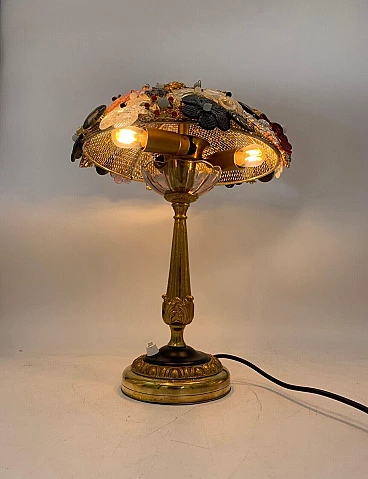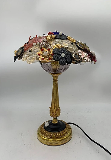 Lampada da tavolo in metallo, bigiotteria e vetro di Murano, anni '60
