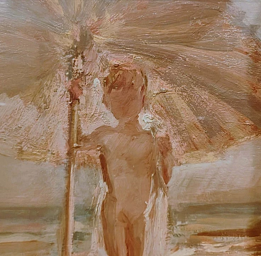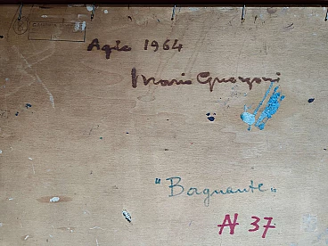Bagnante di Mario Guerzoni, dipinto su legno, anni '60