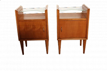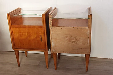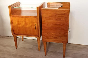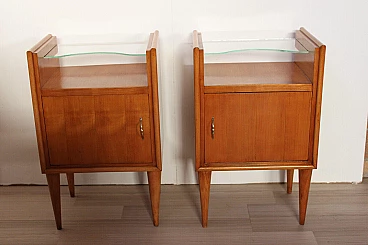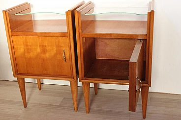 Coppia di comodini in ciliegio con mensola in vetro, anni '50