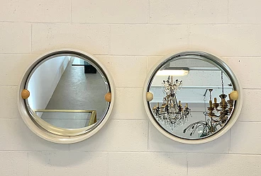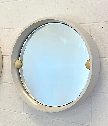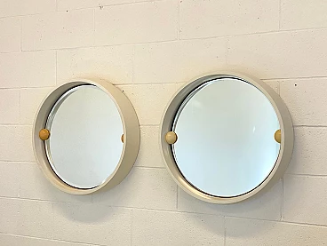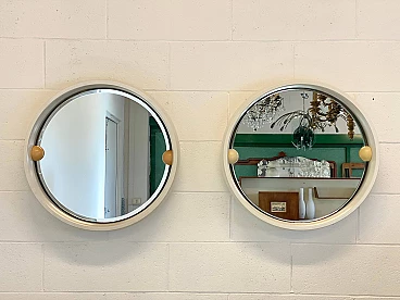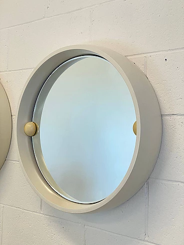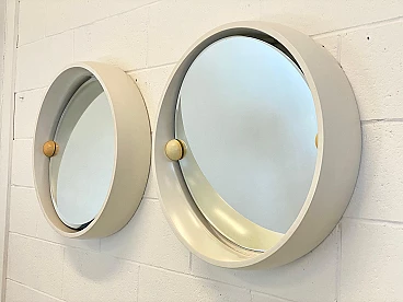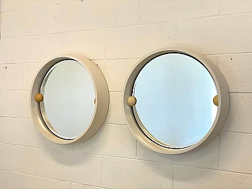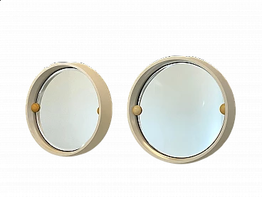 Coppia di specchi rotondi basculanti in legno laccato avorio, anni '70