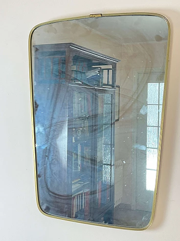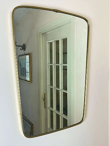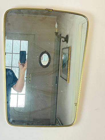 Specchio rettangolare in ottone con angoli smussati, anni '60
