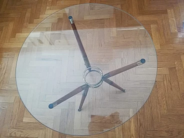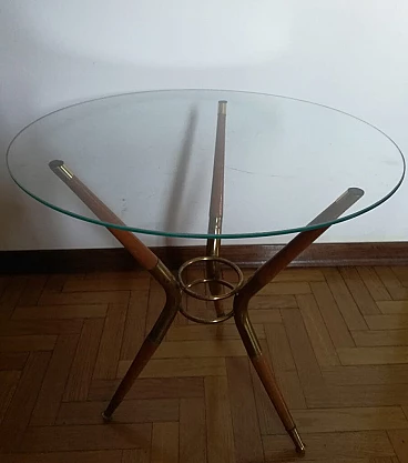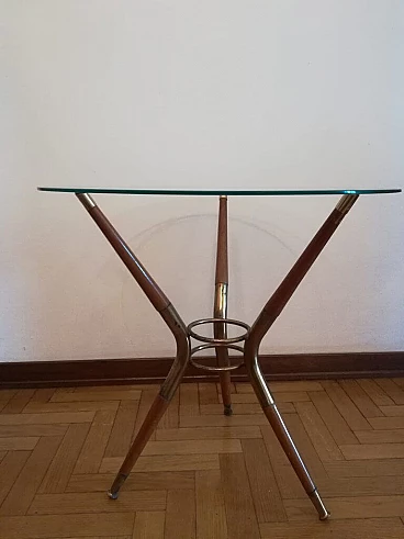 Tavolino in legno curvato, vetro e ottone attribuito a Cesare Lacca, anni '50