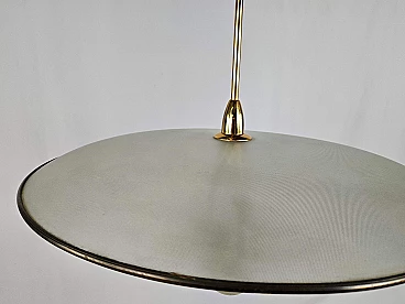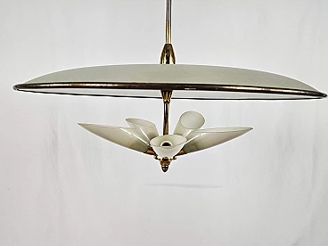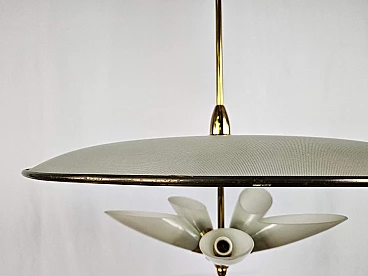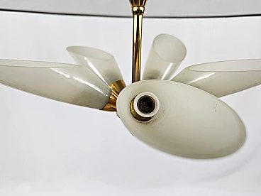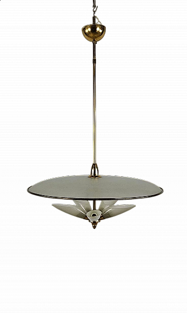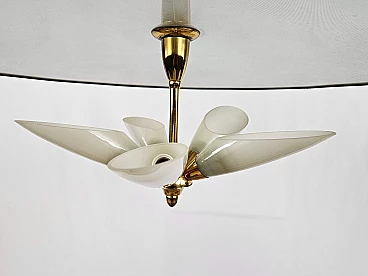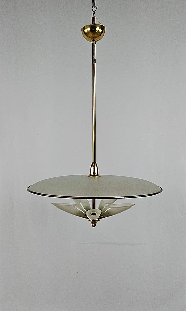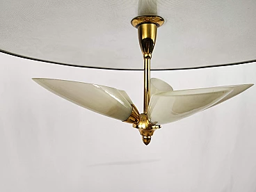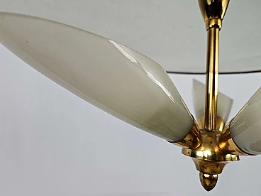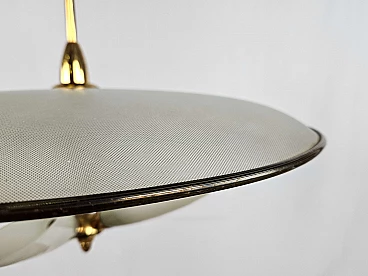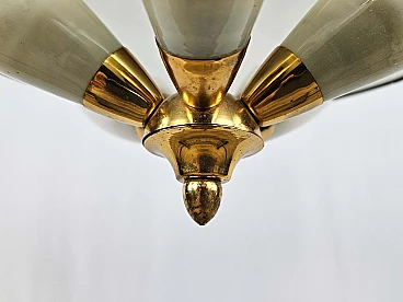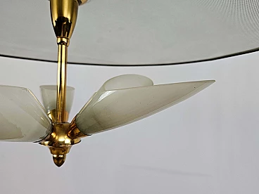 Lampadario in ottone e vetro decorato, anni '70