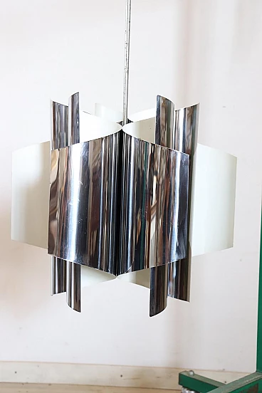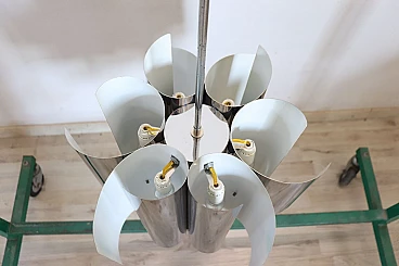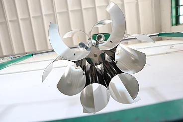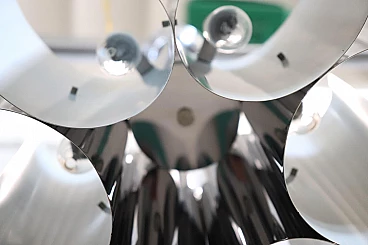 Lampadario Space Age a sei luci in acciaio, anni '70