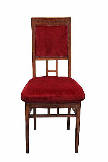 6 sedie primi 900 rivestite in velluto rosso, schienale intarsiato, e sotto la seduta, ottimo stato