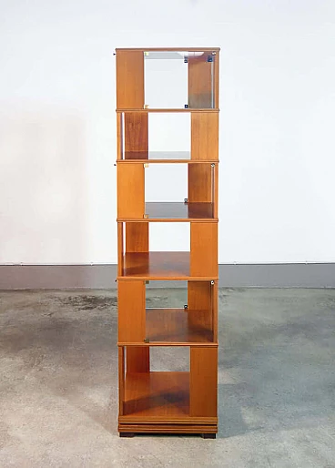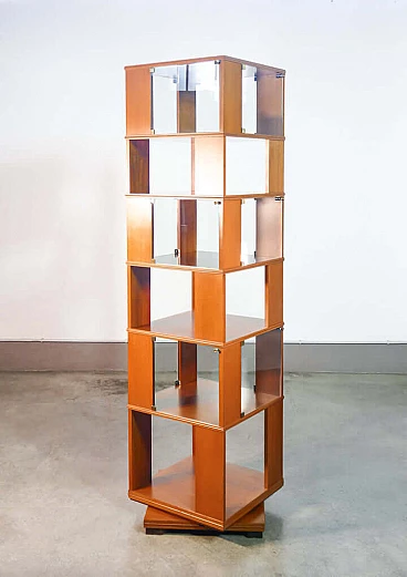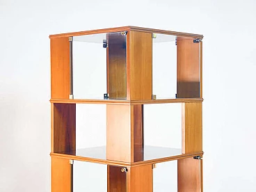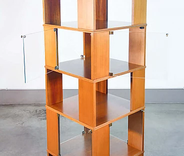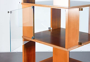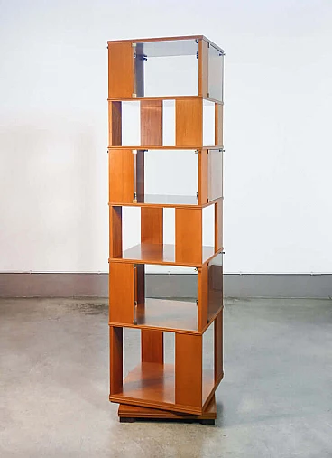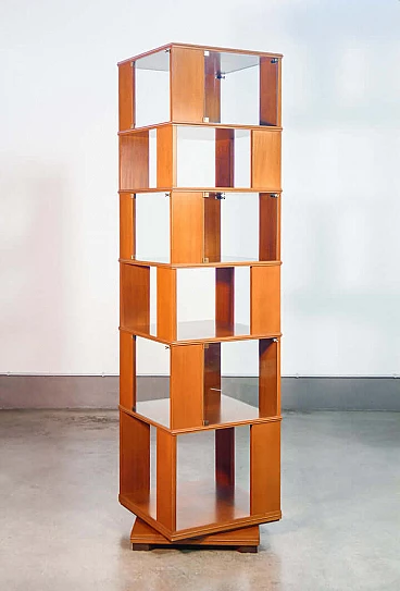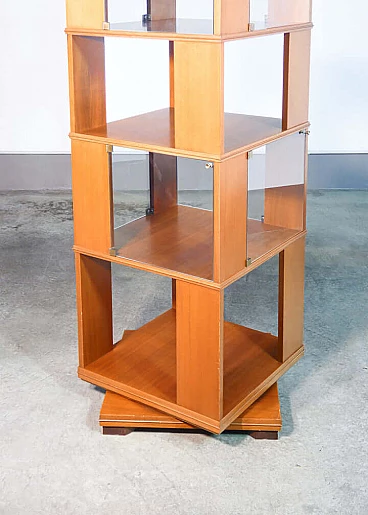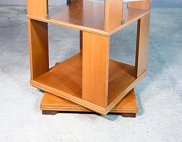 Libreria girevole in legno impiallacciato e vetro, anni '60