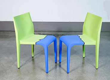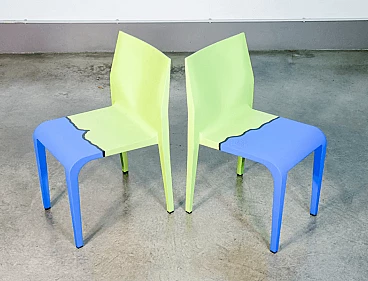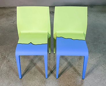 Coppia di sedie Laleggera di Riccardo Blumer per Alias dipinte da Michelangelo Pistoletto, anni 2000