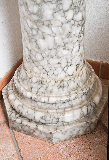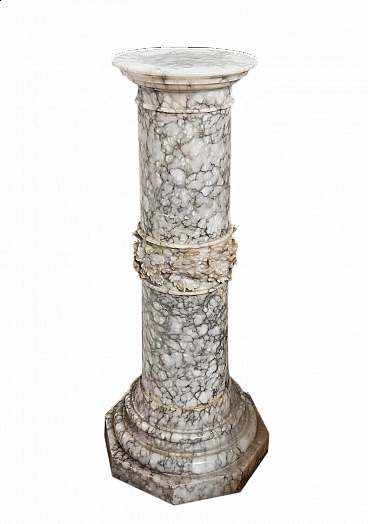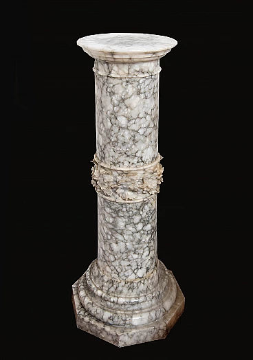 Colonna Romana in alabastro fiorito appartenente alla seconda metà del XIX secolo. La base è di forma ottagonale ed è sovrastato da un tronco circolare intervallato da un tralcio a rilievo. Il capitello è di forma circolare ed è possibile rimuoverlo cosi come la base e i due pezzi della colonna centrale. Facilmente trasportabile perchè vuota all'interno e smontabile in cinque pezzi. Provenienza: Roma XIX secolo. Ottimo stato. Misure: 40x40 cm, H 102 cm. Certificato di Autenticità. Siamo a vostra disposizione per ulteriori chiarimenti o particolari fotografici. Spedizione in tutta Italia, Europa e resto del mondo a prezzi molto contenuti in massima sicurezza e tracciabilità. La spedizione sarà concordata privatamente.
