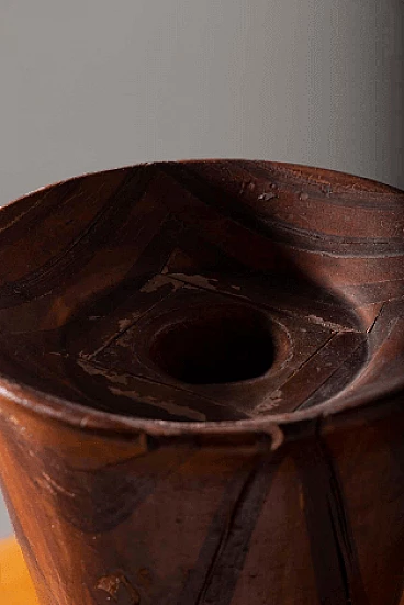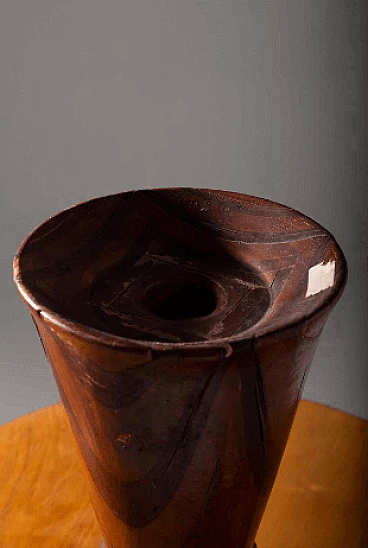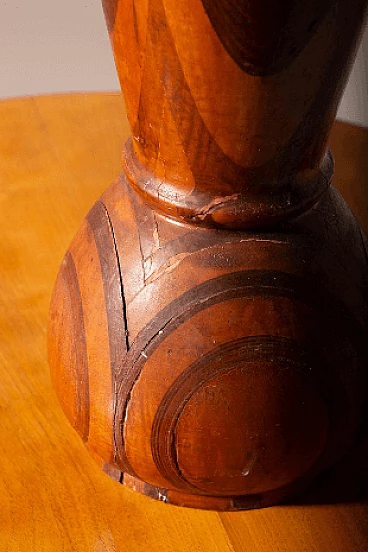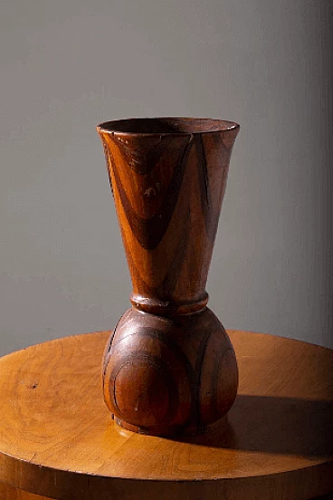 Questo squisito vaso decorativo americano, abilmente realizzato negli anni '50, è un vero gioiello che catturerà il tuo cuore. Scolpito a mano con legni pregiati di varie essenze, è un'opera artigianale magistrale che porta con sé la bellezza e la dedizione degli artigiani del passato. Ogni venatura è una pagina di storia scritta dalla natura stessa e ogni colore rappresenta un'epoca passata. Se stai cercando un regalo straordinario per un amico, un familiare o un collega, questo piccolo vaso decorativo è la scelta perfetta. La sua bellezza senza tempo e il suo significato intrinseco lo rendono un regalo unico e speciale che sarà apprezzato da chiunque lo riceva. Le venature del legno conferiscono al vaso un affascinante effetto visivo. Ogni angolo rivela nuovi dettagli e sfumature, creando un'esperienza visiva coinvolgente. Questo vaso è destinato a diventare il punto focale di qualsiasi spazio, attirando l'attenzione e ispirando conversazioni. Che tu sia un appassionato d'arte, un collezionista o semplicemente una persona che apprezza la bellezza autentica, questo piccolo vaso decorativo è un pezzo d'arte accessibile che può arricchire la tua casa o il tuo spazio di lavoro con la sua eleganza senza tempo. Con questo vaso aggiungi un tocco di arte e di storia alla tua vita quotidiana. Ogni volta che lo guarderai, ti verrà in mente la bellezza senza tempo dell'artigianato e la ricca storia che questo piccolo oggetto porta con sé.