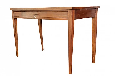 Antico scrittoio Luigi XVI in noce massello gambe a spillo fine 700 area Parmense , cassetto unico centrale . Linea molto sobria ma elegante , molto bella la patina. Restaurato tutto originale. Presenta ancora i suoi chiodi.