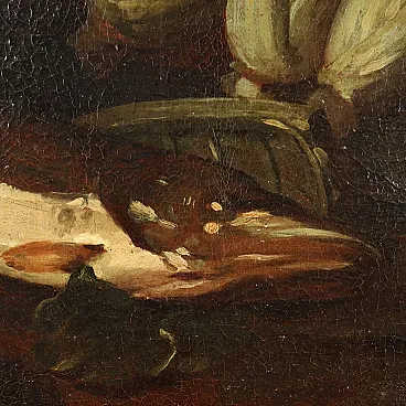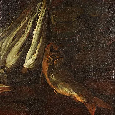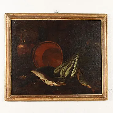Natura morta con pesci e verdure, Cerchia di Felice Boselli, olio su tela, '700