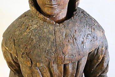 Rara scultura lignea antica italiana risalente all'inizio del XVII secolo. Opera lignea finemente intagliata raffigurante un soggetto religioso, un santo, identificabile con la figura di San Francesco, di grandi dimensioni. La scultura è realizzata su ogni lato per essere esposta anche al centro della stanza. Una bellissima opera d’arte che sarà ammirata nella vostra casa come in un museo. La statua presenta tutti i segni del passare del tempo, si prega di osservare attentamente tutte le immagini. Proposta ad un prezzo trattabile, vi invitiamo ad inviarci le vostre proposte di acquisto, le valuteremo con piacere. Larghezza 40 cm, profondità 28 cm, altezza 115 cm. Imballo professionale, spedizioni assicurate con corrieri, consegna su appuntamento solo su piano strada, no facchinaggio ai piani.