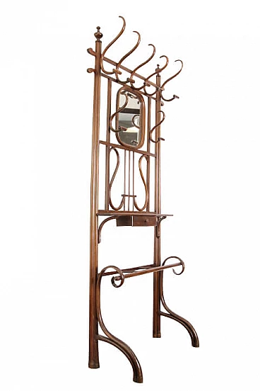 Antico e raro attaccapanni Thonet anni '40, In legno di faggio da parete. Design e linea particolare con al centro lo specchio, completamente restaurato. Pronta da collocare in ambiante.