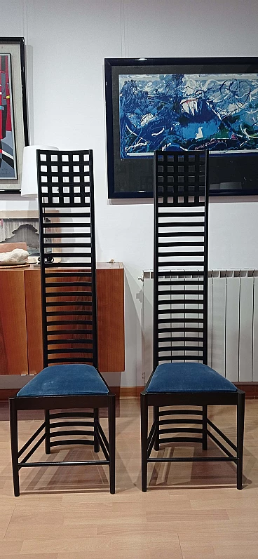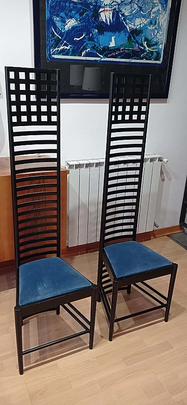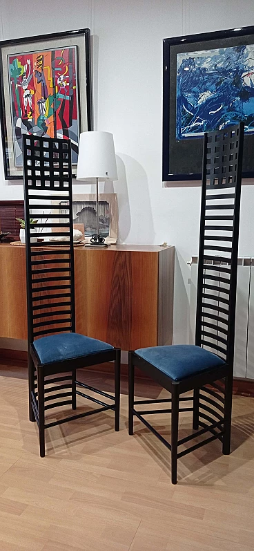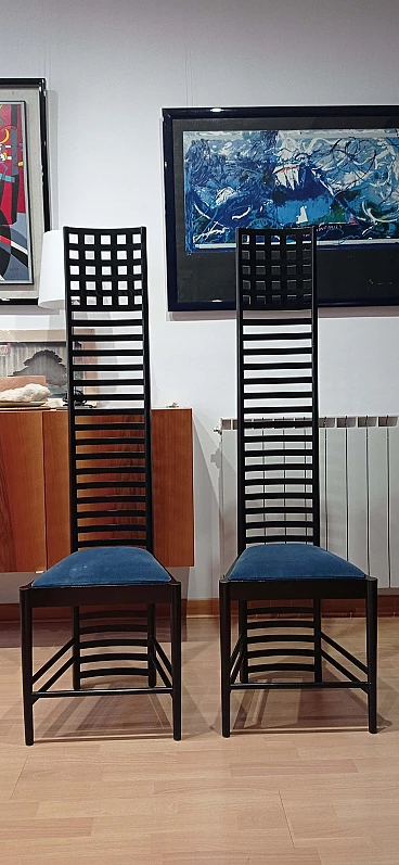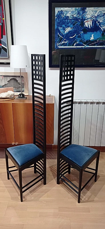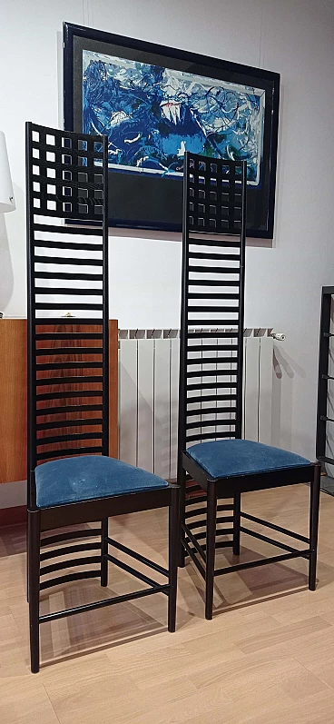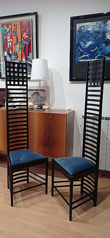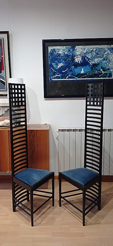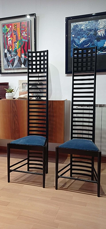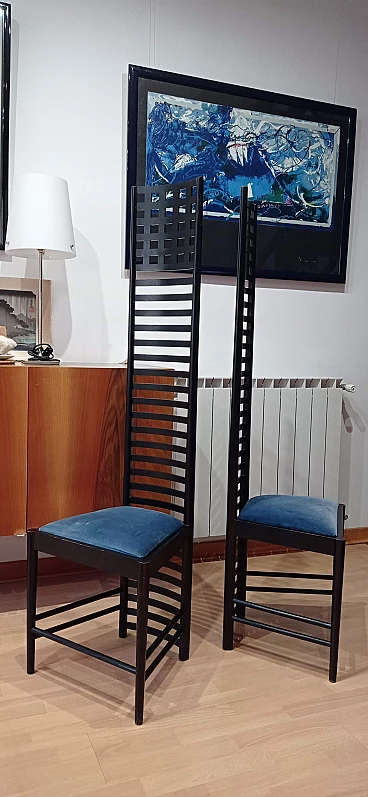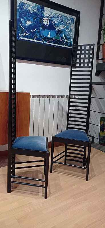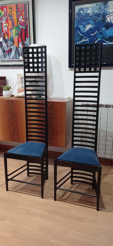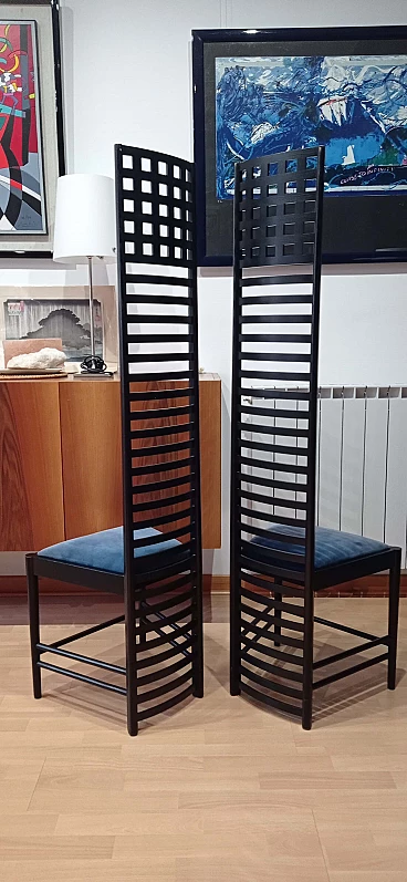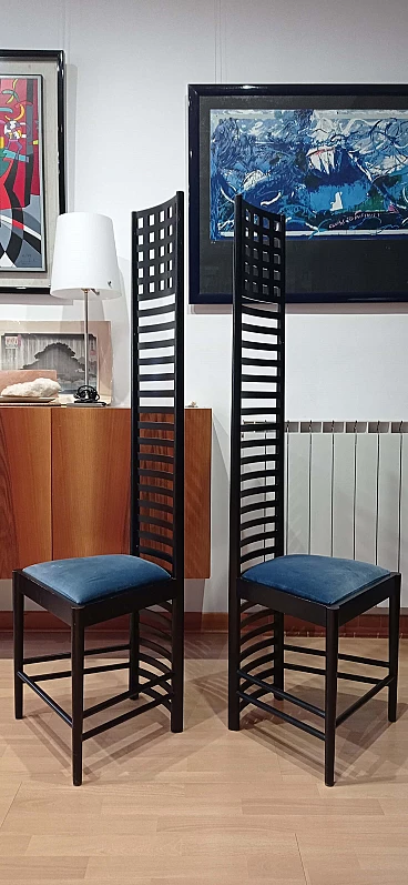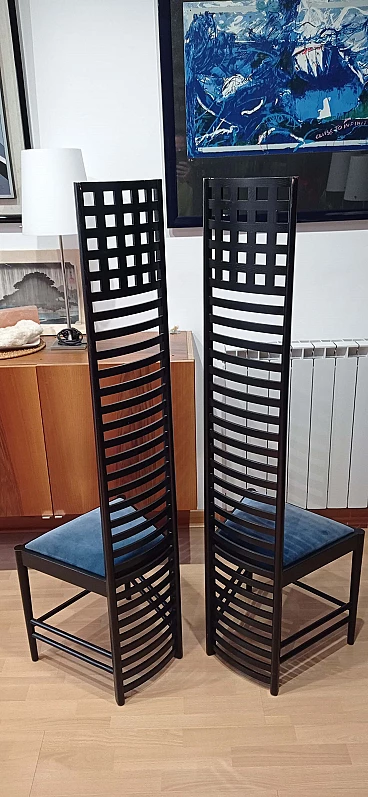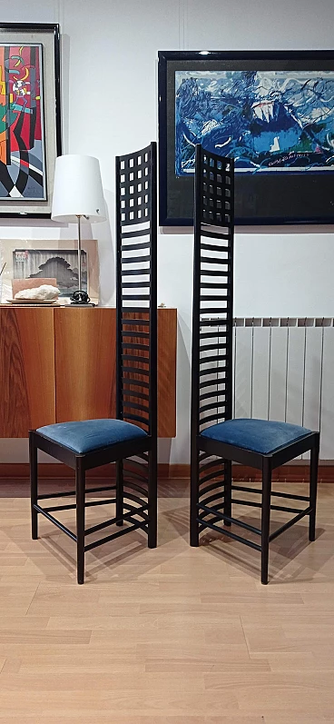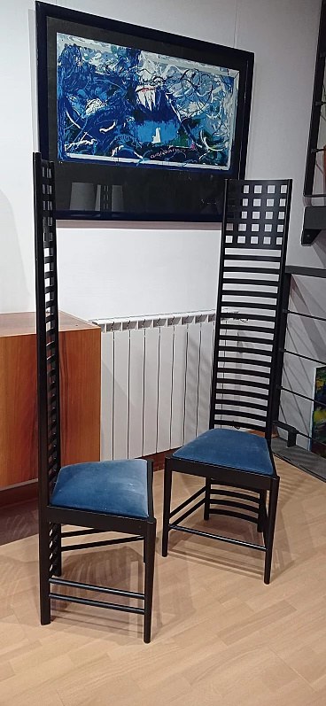 Coppia di sedie MVSEM 814 Hill House Chair di C. R. Mackintosh per Alivar, 1985