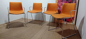 4 Sedia Catifa 46 con braccioli in tessuto Kvard arancio di Studio LAM per Arper