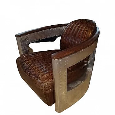 Poltrona Aviator in pelle e acciaio cromato, anni '80