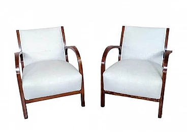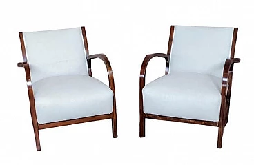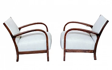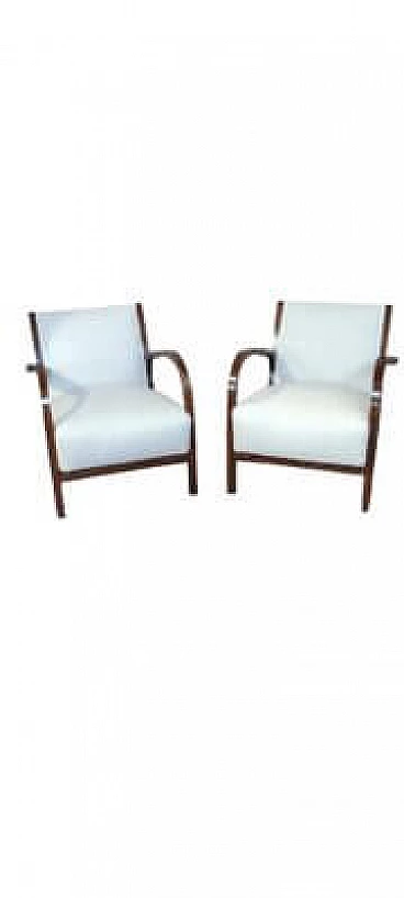 Coppia di poltrone Art Nouveau in faggio e tessuto bianco, fine '800