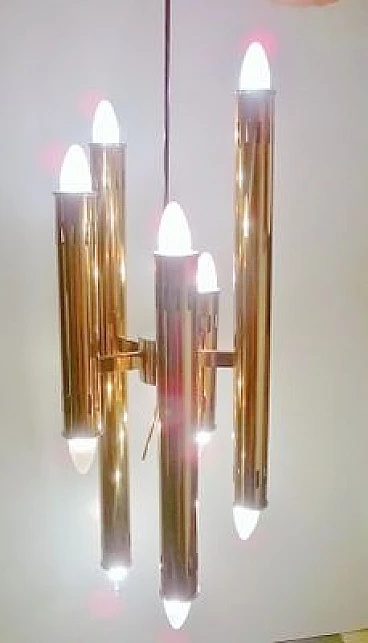 Lampada a sospensione in ottone di Oscar Torlasco, anni '70